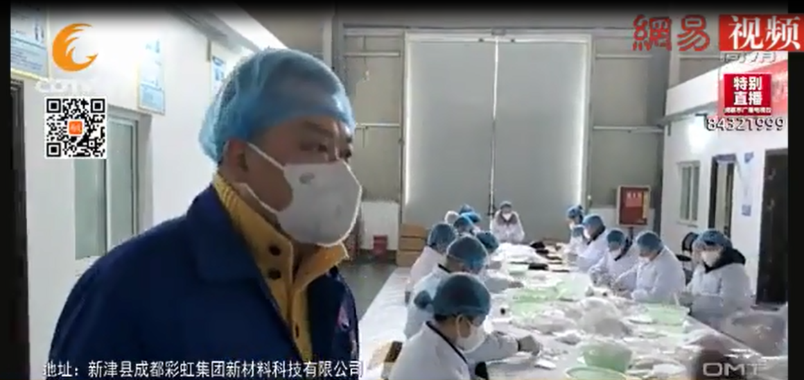 日前,成都台记者到ky体育(中国)集团环保科技分公司进行采访,现场播报口罩生产情况。集团公司常务副总经理刘斌接受现场采访,并就记者关心的口罩产能、人员安排、生产进度、生产环节和工艺等问题进行了详细解答。